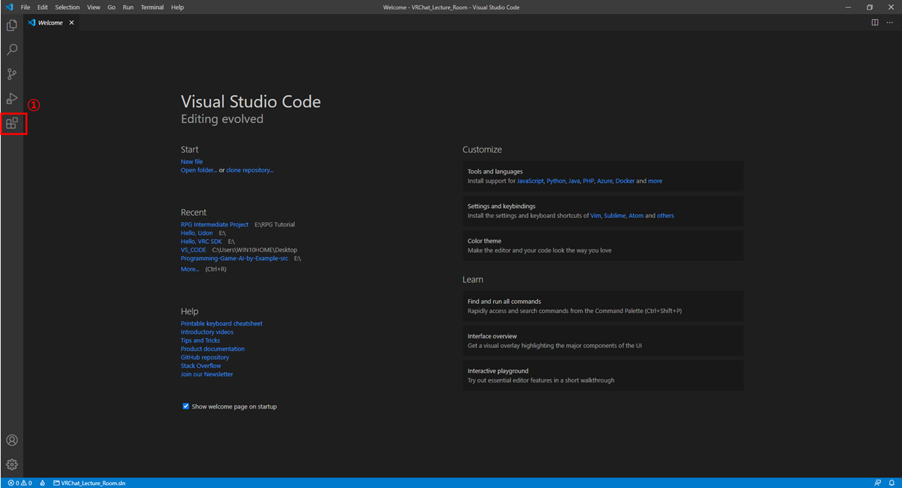 ① Extensions (Ctrl + Shift + X) UI를 누릅니다.