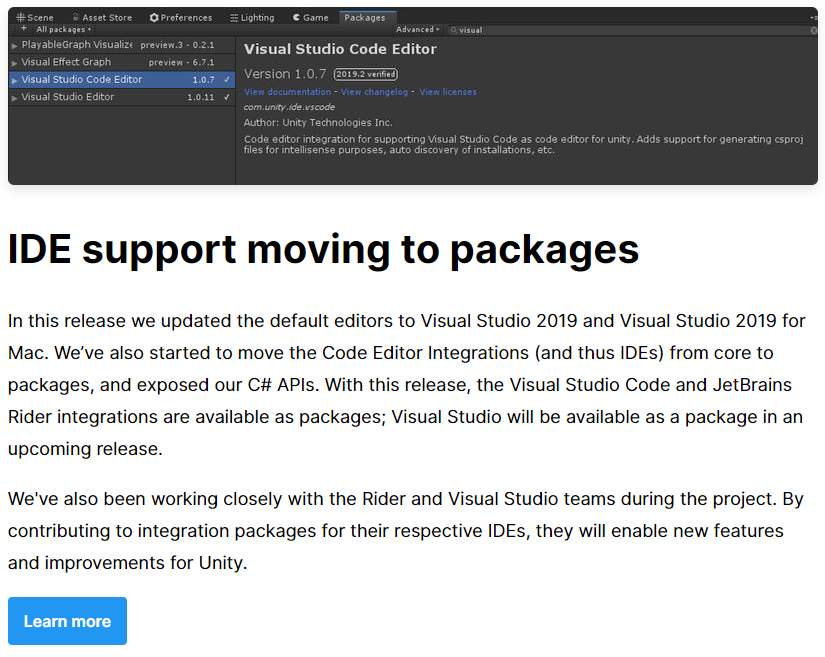 [1] UNITY 2019.2 RELEASE, Nex features and updates for programmer tools - Unity
